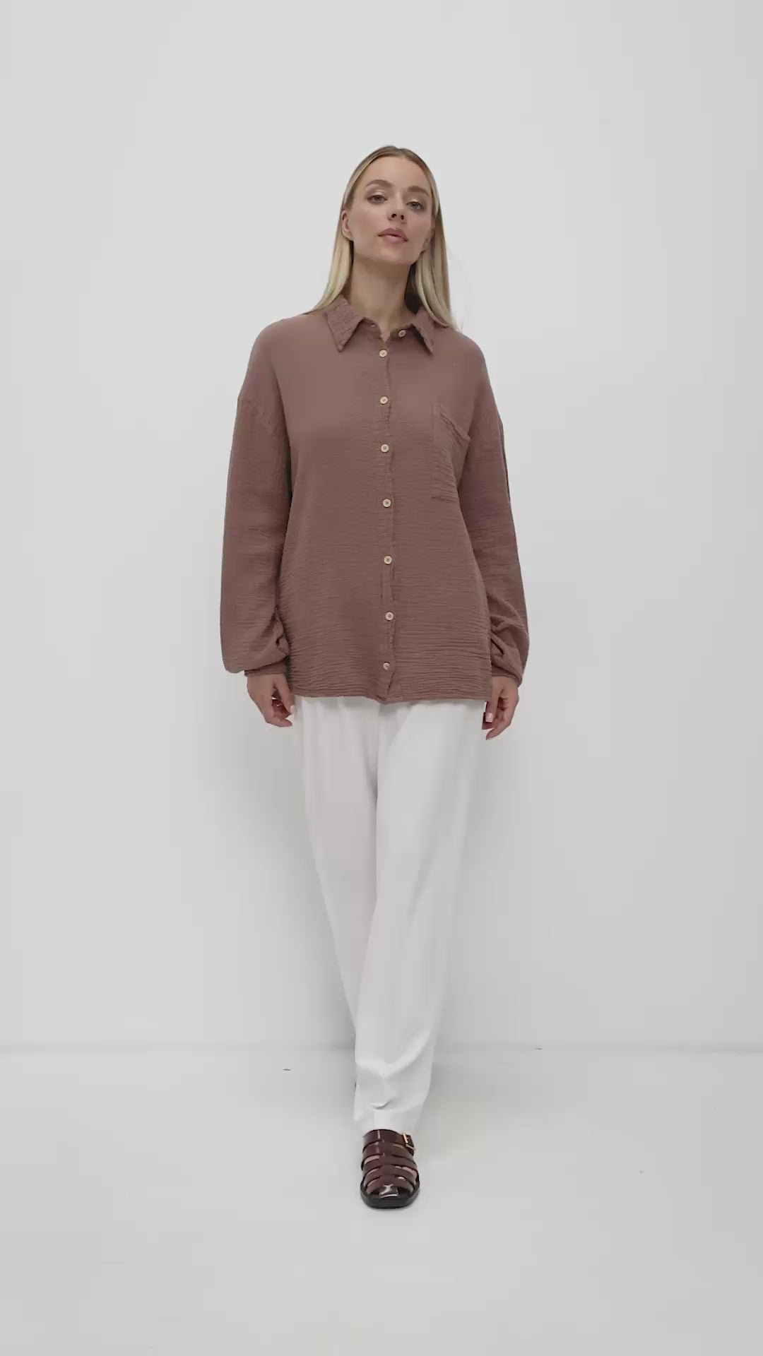 - Kein Bügeln notwendig: Der leichte Crinkle-Effekt ist gewollt und bügelt sich von selbst aus.